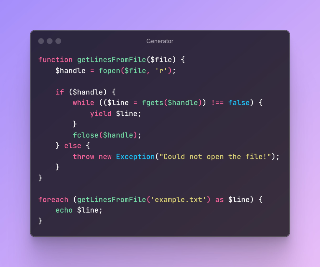 Une fonctionnalité puissante de PHP est les générateurs.