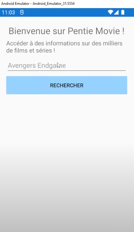 Il s’agit d’une application qui va nous donner des informations sur des films et des séries à partir d’un terme de recherche.